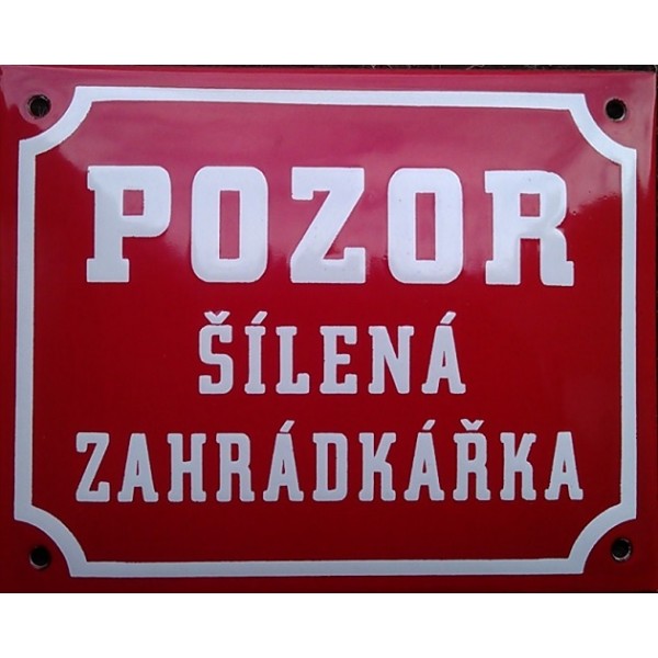 - Červená smaltovaná cedule 200x160 s textem POZOR SCHOD