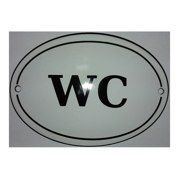 - Černá smaltovaná cedule oválná 140x100mm bílý piktogram koupelny