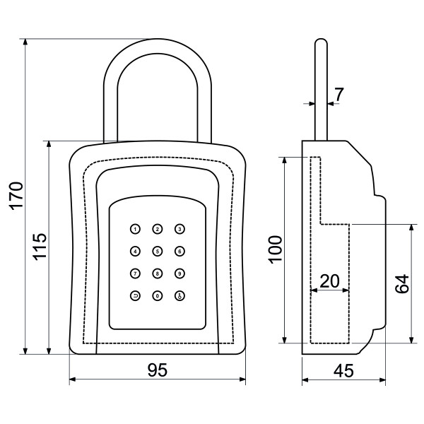 Rozměr vnější š/v/h: 95 x 170 x 45 mm