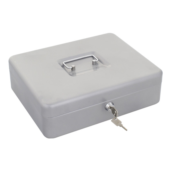 Hlavní výhody: Cylindrický zámek s 2 klíči Vhodná pro mince i bankovky Kvalitní ocelový plech a zapuštěná rukojeť Standardní ocelová pokladnička ve stříbrném provedení nabízí prostor pro uchování menšího obnosu euromincí a eurobankovek. Pozinkovaná rukojeť nerezaví a poslouží na rychlý přenos pokladničky. Zároveň po přenosu lze rukojeť sklopit tak, aby zbytečně překáželi. Uvnitř pokladničky se skrývají plastové přihrádky. Menší uprostřed poslouží na uschování a roztřídění euromincí a dvě po stranách pro eurobankovky. Kasičku dodáváme zabalenou ve fólii.