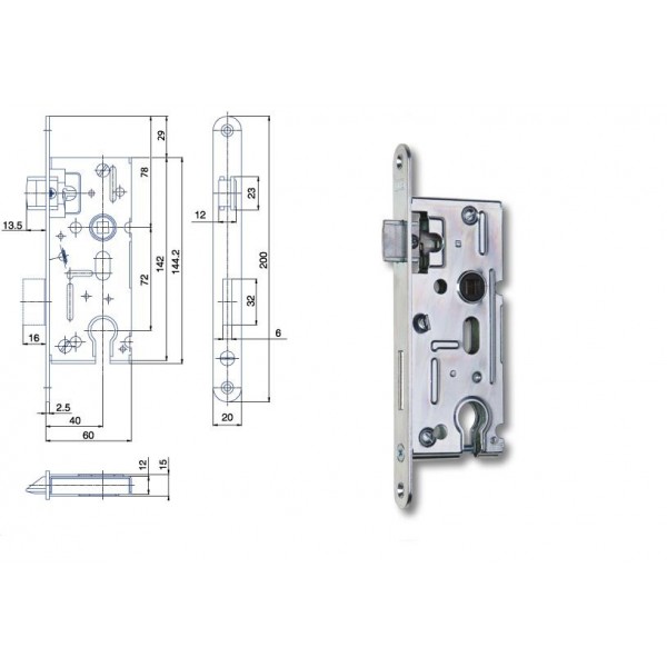 K 106A Zámek zadlabací vložkový - na posuvné dveře, bez převodu