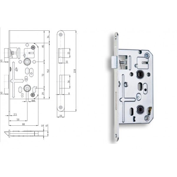 K 133 Zámek zadlabací vložkový, s převodem, dvouzápadový