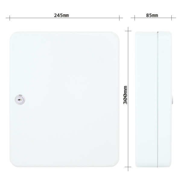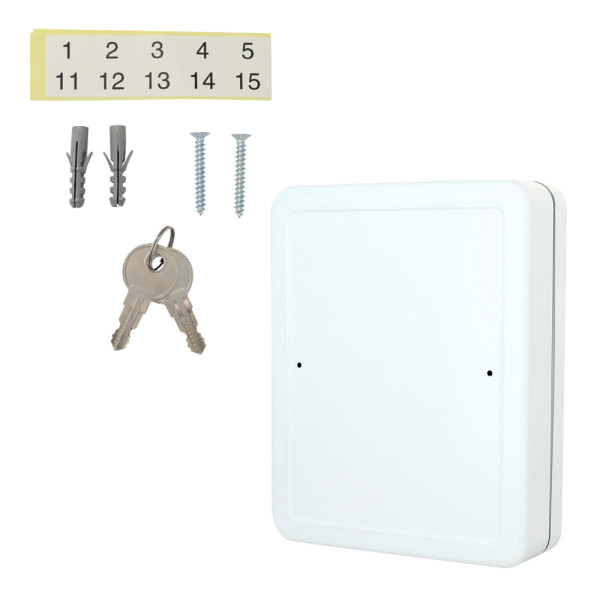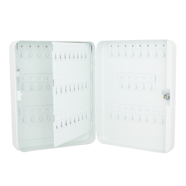 Hlavní výhody: Cylindrický zámek s 2 klíči Prostor pro 93 klíčů Fixně umístěny háčky na lištách Kvalitní ocel Pro opravdu velké množství klíčů nabízíme skříňku na klíče s místem pro 93 klíčů. Všechny klíče tak budou pěkně roztříděny a vždy si najdou své místo. Skříňka obsahuje fixně umístěny háčky na lištách. Bezpečné a přitom stále pěkné odkládací místo pro všechny vaše klíče. Nezabere mnoho místa, protože skříňka se připevňuje na stěnu.