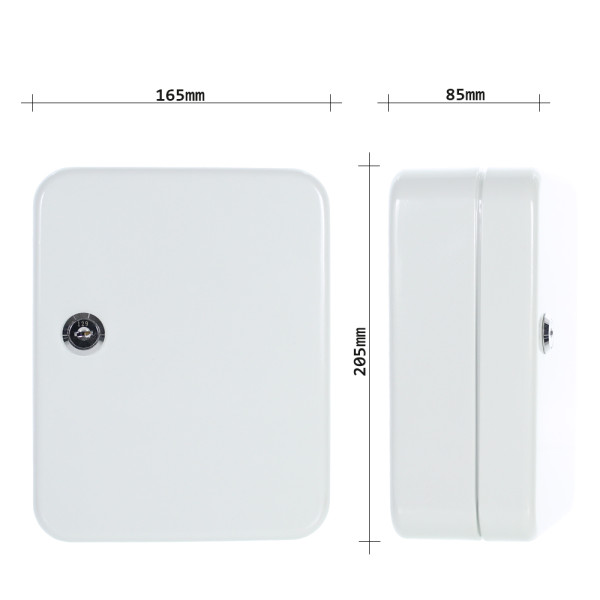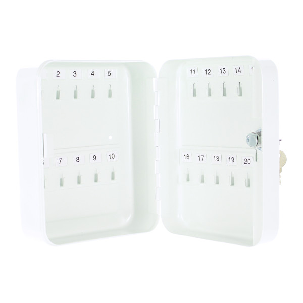 Hlavní výhody: Cylindrický zámek s 2 klíči Prostor pro 20 klíčů Fixne umístěné háčky na lištách Kvalitní ocel Jednoduchá ale funkční ocelová skříňka na klíče vám pomůže udžet pořádek a přehled mezi všemi klíči. Obzvlášť se hodí pro provozy, kde je často třeba mít přehled v klíčích a rychle je umět najít. Na pevně namontované háčky můžete pověsit 20 klíčů přičemž jednotlivé háčky jsou očíslovány pro lepší přehled. Zároveň v balení naleznete potřebný kotvící materiál pro připevnění na stěnu.