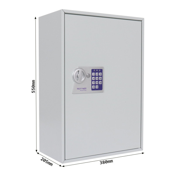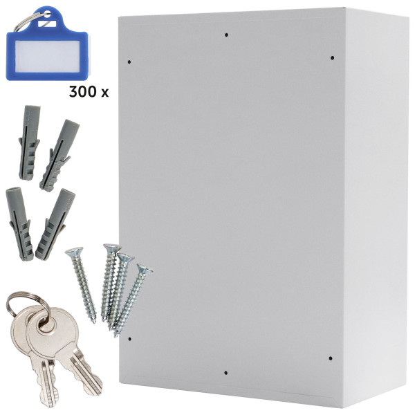 Hlavní výhody: Elektronický zámek Pozinkované háčky na klíče (300 háčků) Napájení 4 x 1,5V AA bateriemi (nejsou součástí balení) Dodávané spolu se 300 visačkami Výškově nastavitelná lišta s háčky Fixně umístěny háčky na lištách Upevnění na stěnu Mechanické nouzové otevírání s cylindrickým zámkem a 2 klíči Kvalitní ocelové provedení Naše největší skříňka na klíče z modelové řady S. Nabízí dostatek prostoru pro bezpečné a přitom stále přehledné uložení až 300 klíčů. Ty pěkně jeden vedle druhého můžete pověsit na fixně umístěny háčky. Háčky jsou umístěny na výškově posuvných lištách, které jsou barevně rozlišeny. Navíc, každý háček má své číslo. Uložené klíče jsou chráněny kvalitním ocelovým plechem a elektronickým zámkem. Přehledná klávesnice usnadňuje zadávání hesla a je spolu se zámkem napájena klasickými 1,5V bateriemi. Skříňku na klíče upevníte na stěnu pomocí otvorů na zadní straně. Potřebný materiál na upevnění je součástí dodávky.