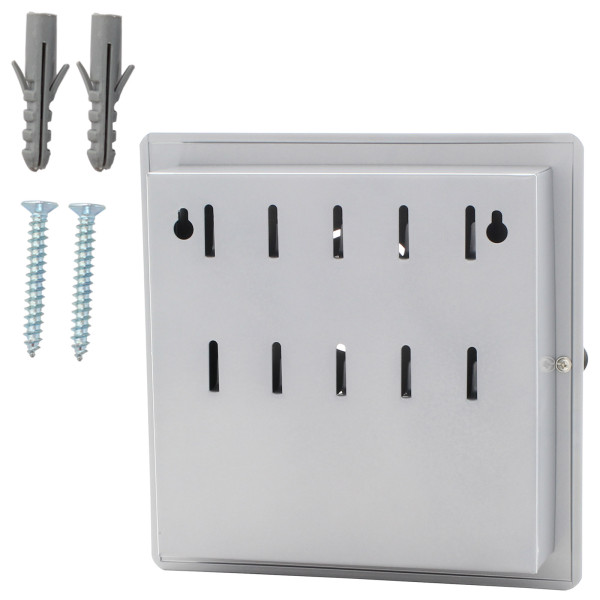 Hlavní výhody: Zavírání magnetickým zámkem 10 háčků na klíče Kvalitní pozinkovaná ocel Jednoduchý ozdobný vzor na dveřích skříňky na klíče potěší nejednoho milovníka interiérového designu. Skříňka se zavírá pomocí jednoduchého magnetu, který je zapuštěn v těle skříňky. Rychlý přístup a zároveň přehledně umístěny háčky poslouží na uschování 10 klíčů. Vaše klíče od domu, bytu, sklepy, garáže a od jiných prostor tak budou neustále přístupné a přehledně seřazeny. V balení materiál pro upevnění na stěnu.