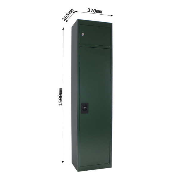 Hlavní výhody: Cylindrický zámek s 2 klíči Prostor pro 5 dlouhých zbraní Kvalitní povrchová úprava Jednoplášťová skříň Samostatná schránka (250 mm) s cylindrickým zámkem a 2 klíči Zelená skříň na zbraně spolu se samostatnou vnitřní schránkou nabízí dostatek prostoru pro vaše dlouhé zbraně. Celkově až 5 dlouhých zbraní uskladníte uvnitř skříně a do horní schránky lze uložit např. munici. Kvalitní ocel zajistí, že vaše zbraně budou v bezpečí před nežádoucím zacházením a zároveň pěkně uskladněny. Skříň je vybavena otvory na zadní a spodní straně a spolu s dodávaným materiálem pro upevnění ji snadno zafixujete na místě. Verze Cargo je dodávána v odolnějším obalu, který zajistí podstatně nižší šanci na poškození během přepravy. Tato skříň není certifikována. Pro tuto schránku na zbraně je stanoveno, že při přechovávání dlouhých zbraní do počtu 2 ks nebo do 500 ks nábojů plati prohlášení o shodě.