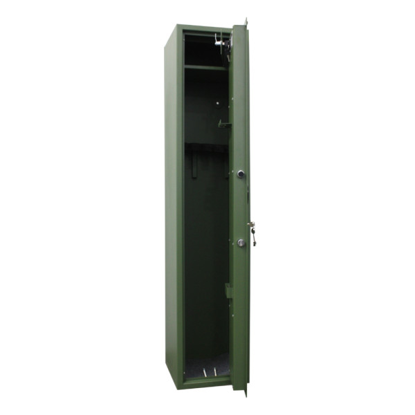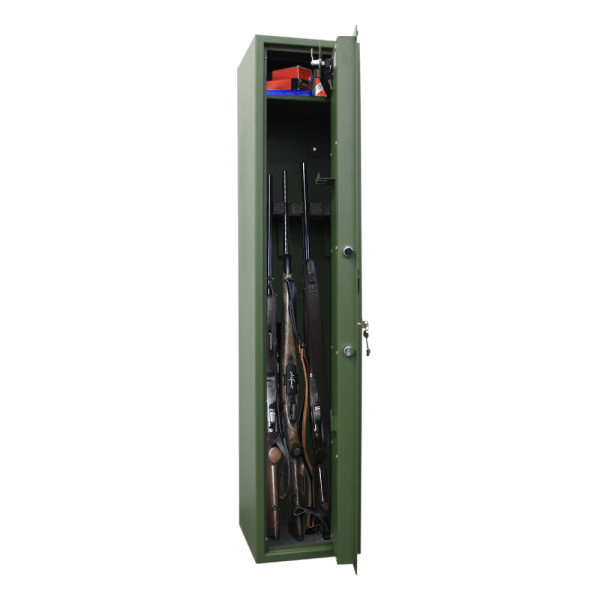 Hlavní výhody: Bezpečnostní třída S1 (ČSN EN 14450) Minimálně 15 RU (ČSN EN 1143-1) Certifikovaný trezorový zámek s 2 klíči (EN 1300 třída A) Zámek chráněn proti odvrtání Možnost uložení až 5 dlouhých zbraní Malá samostatně uzamykatelná vnitřní schránka se 2 klíči Držáky pro uchycení nářadí na čištění zbraní Barva: Zelená matná Skříň na celkově 5 dlouhých zbraní nabízí bezpečnostní dveře, na kterých vnitřní straně najdete držák na nářadí, které používáte při čištění zbraní. Zároveň je v horní části umístěna samostatně uzamykatelná skříňka s cylindrickým zámkem a 2 klíči, kterou můžete využít například na uskladnění munice. Skříň splňuje bezpečnostní třídu S1 a také požadavek na Min 15 RU a vyhovuje požadavkům na úschovu zbraní a střeliva, které jsou stanoveny zákonem č.190 / 2003 Sb Skříň má otvory k ukotvení na spodní i zadní straně a ukotvit ji můžete na podlahu nebo na stěnu. Potřebný kotvící materiál je součástí balení. Splňuje podmínky dle zákona č. 119/2002 Sb. o zbraních a střelivu.