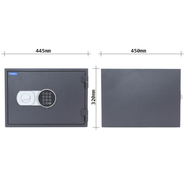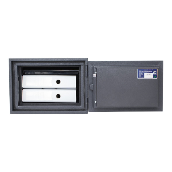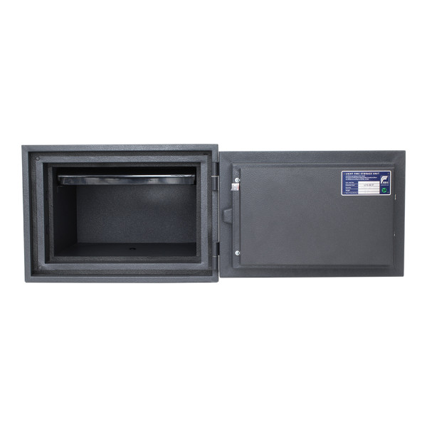 Hlavní výhody: Elektronický zámek bez nouzového otevírání Třída požární odolnosti S60P (EN 15659) Napájení 4 x 1,5V AAA baterií (není součástí balení) Speciální výplň proti ohni (60 minut pro papír) Malá přihrádka v horní části na dokumenty Dvouplášťový sejf z oceli Otvory na ukotvení na spodní straně trezoru Kvalitní ocelový sejf s bezpečným elektronickým zámkem, který nedisponuje soupravou nouzových klíčů. Sejf je napájen klasickými 1,5V AAA bateriemi, které zajistí potřebnou energii pro správné fungování zámku. Testovaný protipožární materiál, kterým je sejf vyplněn zabrání poškození vlivem ohně, protože disponuje certifikátem požární odolnosti třídy S60P (EN 15659). Papír je tak chráněn až po dobu 60 minut. Uvnitř sejfu najdete i malou přihrádku kde se vejdou cenné dokumenty, papíry nebo cestovní doklady. Sejf připevníte k podlaze pomocí přiloženého kotvícího materiálu. Kování zvyšuje celkovou vnější hloubku sejfu o 60 mm.