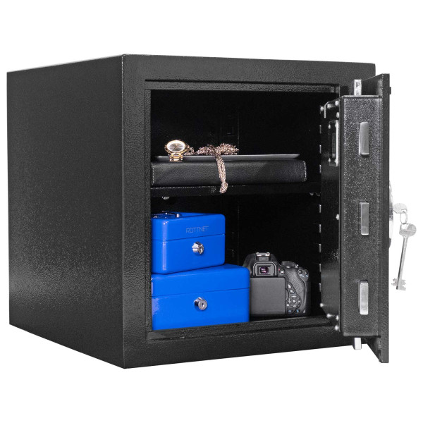 Hlavní výhody: Certifikovaný trezorový zámek se 2 klíči Bezpečnostní třída I (ČSN EN 1143-1) Možnost úschovy aj zbraní a munice podle č. 190/2003 Sb. z. 3 stranný uzamykací mechanismus Polička uvnitř Otvory na ukotvení na spodní a zadní straně trezoru Skvělý nábytkový trezor z modelové řady Monaco nabízí ideální řešení, jak uschovat cenné věci a dokumenty v domácím nebo kancelářském prostředí. Disponuje certifikovaným trezorovým zámkem a bezpečnostní třídou I (ČSN EN 1143-1), takže vaše šperky, cennosti nebo důležité šanony budou v bezpečí. Zároveň můžete v trezoru uschovat i krátké zbraně a munici. Dveře trezoru jsou vybaveny 3 stranným uzamykacím mechanismem. Vnitřní dispozici vhodně předěluje polička. Trezor můžete pomocí připravených otvorů na spodní a zadní straně ukotvit na podlahu nebo stěnu. Kotvící materiál je součástí dodávky. Kování zámku zvyšuje celkovou vnější hloubku trezoru o 15 mm.