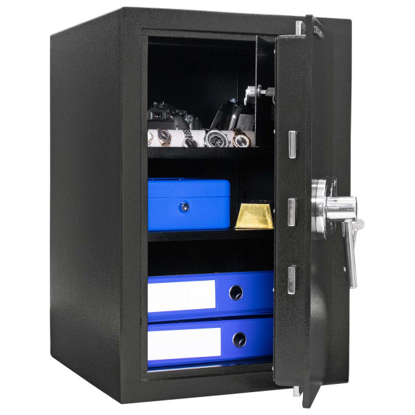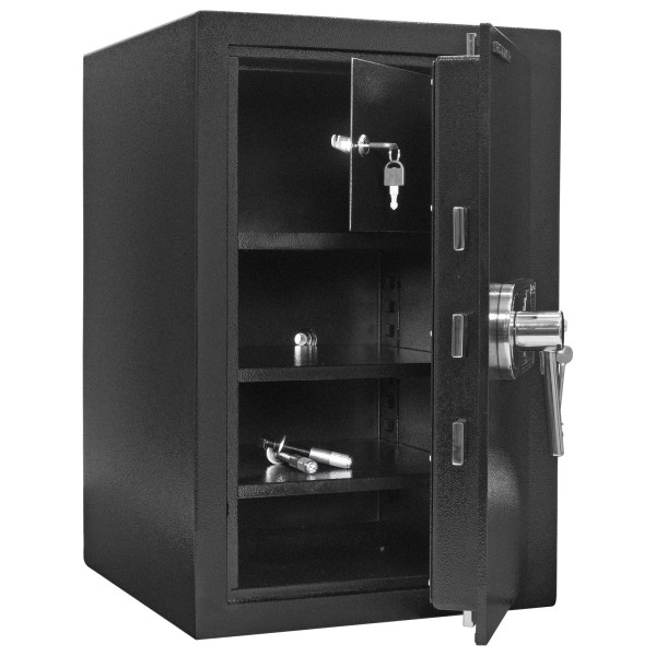 Hlavní výhody: Certifikovaný trezorový zámek s 2 klíči Bezpečnostní třída I (ČSN EN 1143-1) Možnost úschovy zbraní a munice podle č. 190/2003 Sb. z. 3-stranný uzamykací mechanismus Polička uvnitř Otvory na ukotvení na spodní a zadní straně trezoru Kvalitní a spolehlivý trezor modelové řady Monaco nabízí bezpečný prostor pro vaše cennosti, dokumenty nebo šanony. Podle legislativy je možné v trezoru uschovat i krátké zbraně spolu s municí. Certifikovaný trezorový zámek dohromady s bezpečnostní třídou I zaručí potřebnou ochranu věcí uložených uvnitř. Po zavření dveří zajistí 3-stranný uzamykací mechanismus dokonalé uzavření prostoru. Vnitřek je doplněno poličkou, která rozdělí prostor podle vašich potřeb. S pořádným ukotvením nebude problém. Prostřednictvím připravených otvorů na ukotvení na spodní a zadní straně bude trezor pevně držet na místě. Kotvící materiál je součástí dodávky. Kování zámku zvyšuje celkovou vnější hloubku trezoru o 60 mm.
