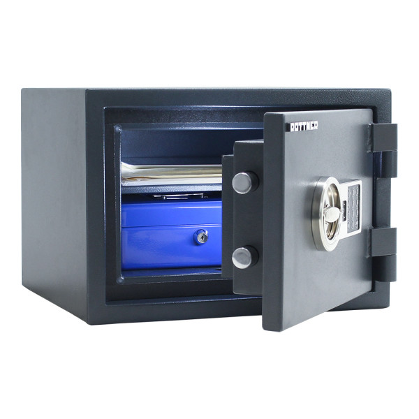 Hlavní výhody: Certifikovaný elektronický zámek Bezpečnostní třída I (ČSN EN 1143-1) Ohnivzdornost po dobu 30 minut pro papír Napájení 1 x 9V baterií (není součástí balení) 3-stranný uzamykací mechanizmus Korpus tloušťky 56 mm a dveře tloušťky 95 mm Nastavitelná polička uvnitř Otevření dveří až do 180° Možnost doobjednání teleskopické police Možnost doobjednání teleskopické registratury Elektronické nouzové otevírání externí baterií Otvory na ukotvení na spodní straně trezoru Šedý trezor z modelové řady Fire Hero nabízí bezpečné uložení věcí a zároveň i jejich spolehlivou ochranu před ohněm. Trezor totiž disponuje bezpečnostní třídou I a ohnivzdorností až po dobu 30 minut. Pro přístup do trezoru je třeba zadat kód, aby se certifikovaný elektronický zámek otevřel. Jeho napájení zajišťuje 9V baterie. Po otevření dveří až do úhlu 180° je možné věci pohodlně uložit. Následně po zavření dveří a opětovném zadání kódu se trezor uzamkne pomocí 3-stranného mechanismu. Uvnitř se nachází nastavitelná polička pro lepší uspořádání uložených věcí. Trezor nabízí i možnost doobjednání doplňkové výbavy. Na spodní straně trezoru jsou připraveny otvory pro ukotvení. Kotvící materiál je součástí balení. Kování zámku zvyšuje celkovou vnější hloubku trezoru o 20 mm.