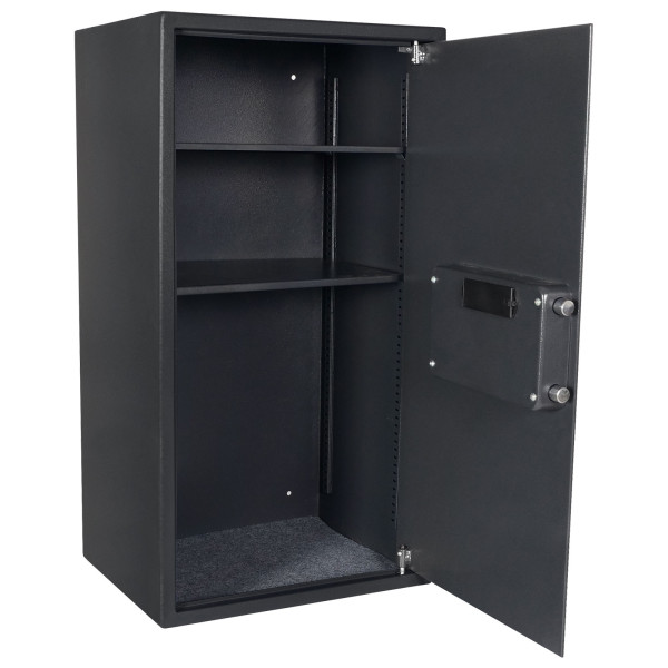 Hlavní výhody: Elektronický zámek Napájení 4 x 1,5V AA bateriemi (nejsou součástí balení) Jednoplášťový sejf 2 police vyjímatelné Nouzové mechanické otevírání Otvory pro ukotvení na spodní i zadní straně trezoru Nábytkový sejf z modelové řady Jupiter má elektronický zámek s napájením 4 x 1,5V bateriemi (nejsou součástí balení). Uvnitř sejfu najdou své místo malé cennosti, doklady, hodinky nebo menší šperky. Sejf lze ukotvit prostřednictvím připravených otvorů na spodní i zadní straně. Materiál pro ukotvení je součástí balení. Pro tuto schránku na zbraně je stanoveno, že při přechovávání krátkých zbraní do počtu 2 ks nebo do 500 ks nábojů plati prohlášení o shodě.